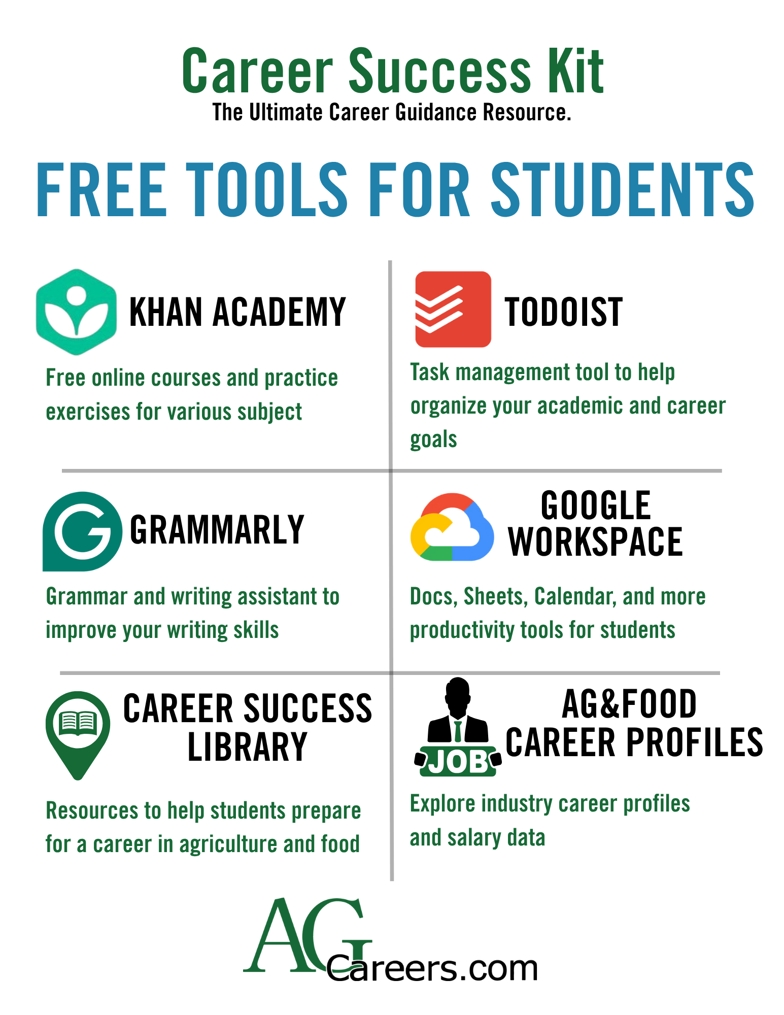 Explore a collection of free tools designed to help students stay organized, strengthen skills, and prepare for future career success. This infographic highlights top platforms that support academic growth and career readiness.